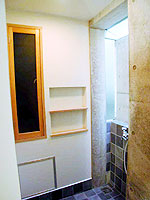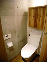 衛生陶器背後の吊戸棚は、建具屋製作もの。